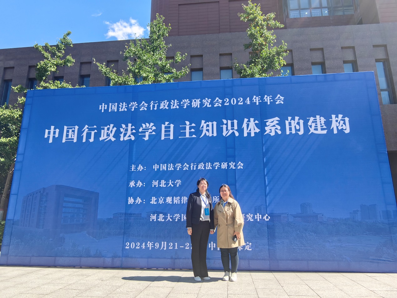 2024年9月21日,yl88858永利官网蒋冰晶教授、张继红副教授参加中国法学会行政法学研究会2024年年会,年会主题为“中国行政法学自主知识体系的建构”。本次会议由中国法学会主办,河北大学法公司承办。会议就“中国行政法学自主知识体系的建构”进行了研讨。蒋冰晶教授在会上作为分论坛与谈人发言。