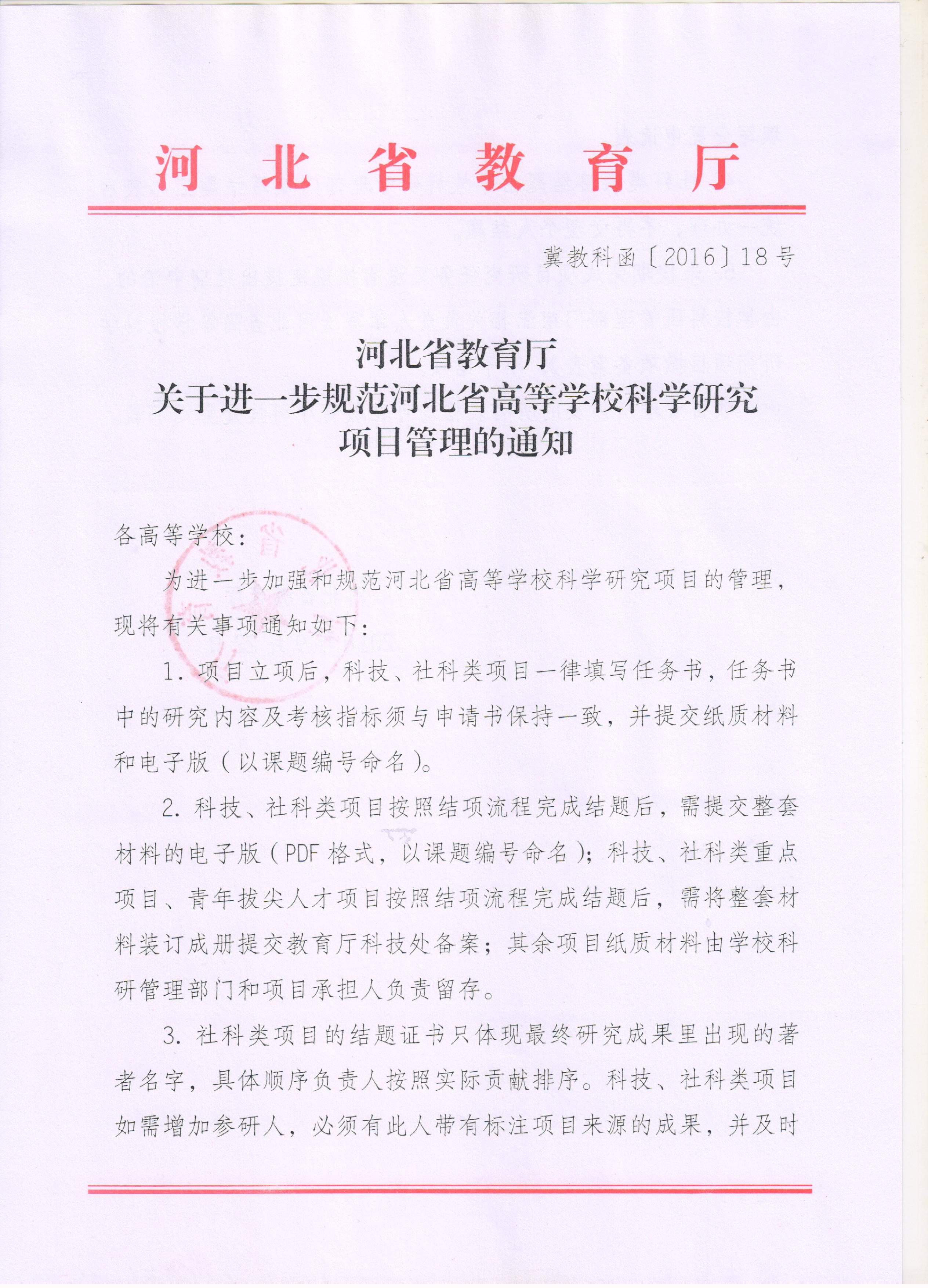 河北省教育厅关于进一步规范河北省高等公司科学研究项目管理的通知