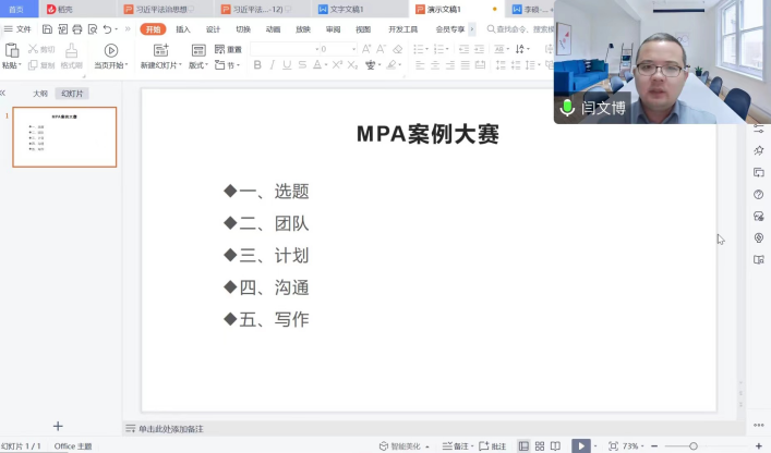 秋风习习,天朗气清。2022年11月15日16点30分,第七届全国研究生公共管理案例大赛报名动员会在MPA教育中心顺利举行。本次会议由MPA中心副主任李亚鹏老师主持,yl88858永利官网闫文博副经理、yl88858永利官网陈晓春副教授、MPA教育中心招生总监张明展老师、MPA2021级和MPA2022级全体同学参加了本次会议。