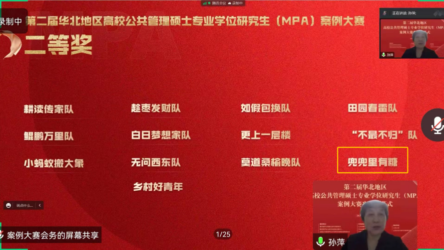 2022年12月11日,第二届华北地区高校公共管理硕士专业学位研究生(MPA)案例大赛决赛拉开序幕,本次比赛以线上腾讯会议的方式举行,共48支队伍进入决赛。