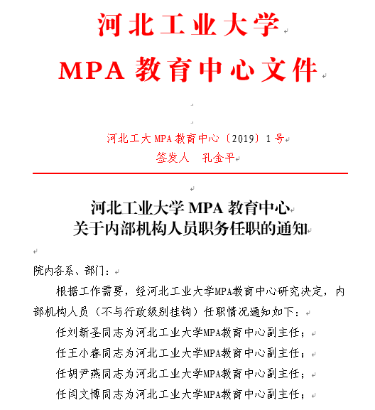 永利集团官网MPA教育中心关于内部机构人员职务任职的通知
