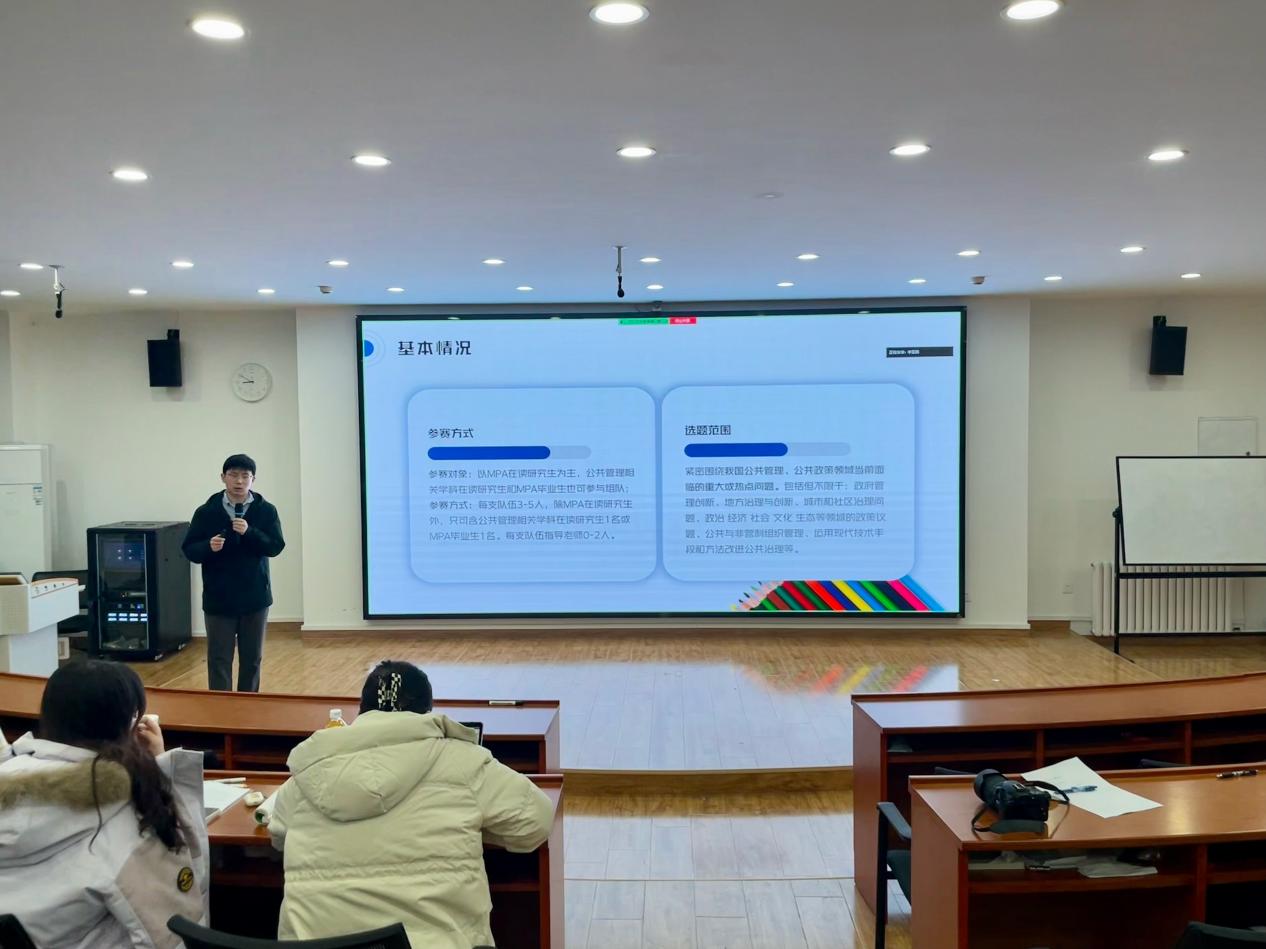 2023年12月11日晚,永利集团官网MPA教育中心于7C-208教室举办了第八届中国研究生公共管理案例大赛动员会,yl88858永利官网副经理闫文博、MPA教育中心副主任李亚鹏共同主持。