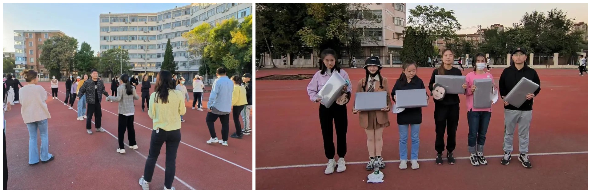 接下来是烧脑的传声筒环节,表演的同学手舞足蹈,猜词的同学也绞尽脑汁,大家时不时被逗到大笑出声,整个操场一片欢乐声。