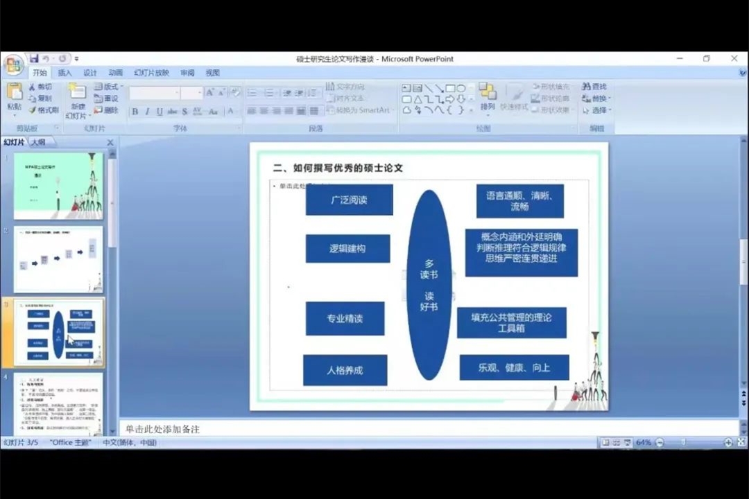 首先,李培智教授强调论文写作的开展需要同学们具备一定的文字表达功底,培养逻辑思维能力,学习专业理论知识。