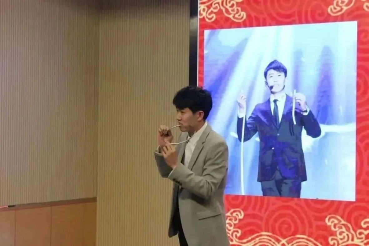 从白纸变钞到六连环,一范一式之间是台下不曾间断的苦练,是不能一日千里的坚持;从三仙归洞到心理魔术,是将双手与心灵相通,是技巧也是心智的磨练……灯光下同学们与戏法传承人的趣味互动、赞叹与掌声穿插于表演之中,精彩的表演让在场的观众都沉浸其中。