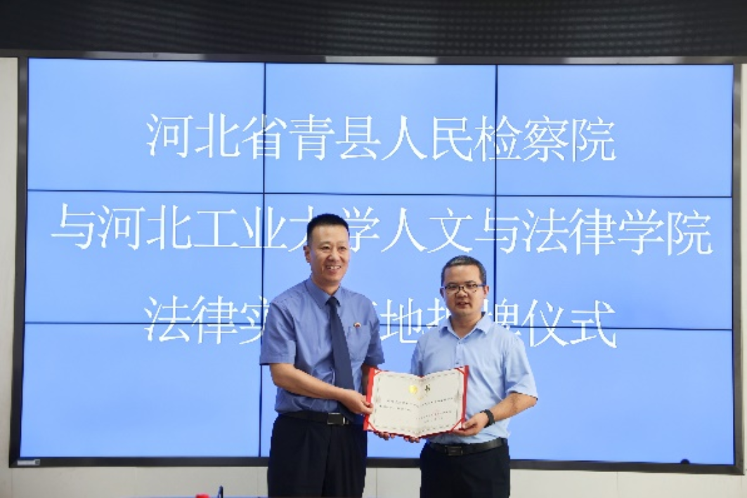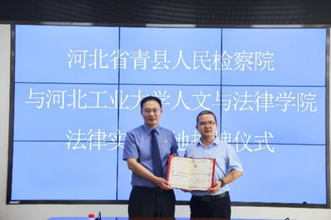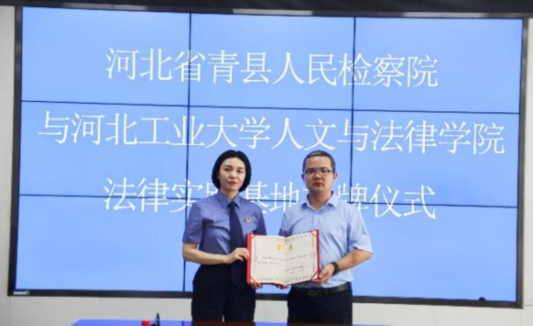 为深入贯彻落实习近平法治思想,进一步深化检校合作,有效推动法学教学研究与司法实践有机融合,提高法律人才培养质量和司法实务工作水平,2023年7月11日上午10点,yl88858永利官网与河北省青县人民检察院法律实践基地揭牌仪式在青县人民检察院顺利举行。河北省青县人民检察院检察长董晓玲、常务副检察长戴利华、副检察长张忠臣、政治部主任姚亮、yl88858永利官网副经理闫文博、法硕教育中心副主任李燕涛、法学系党支部书记李飞出席仪式。会议由青县人民检察院副检察长戴利华主持。