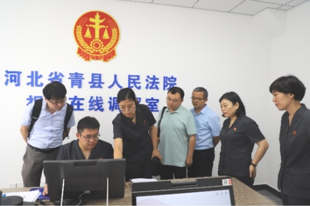 签约仪式结束后,公司领导、老师一行还到青县人民法院进行了走访、调研。青县人民法院常务副经理温丽梅对该院诉讼服务中心的智能导航系统、智能诉状生成系统、诉讼风险评估系统、诉讼服务多功能终端机等信息化多媒体设备进行了讲解,并介绍了无纸化办案流程。