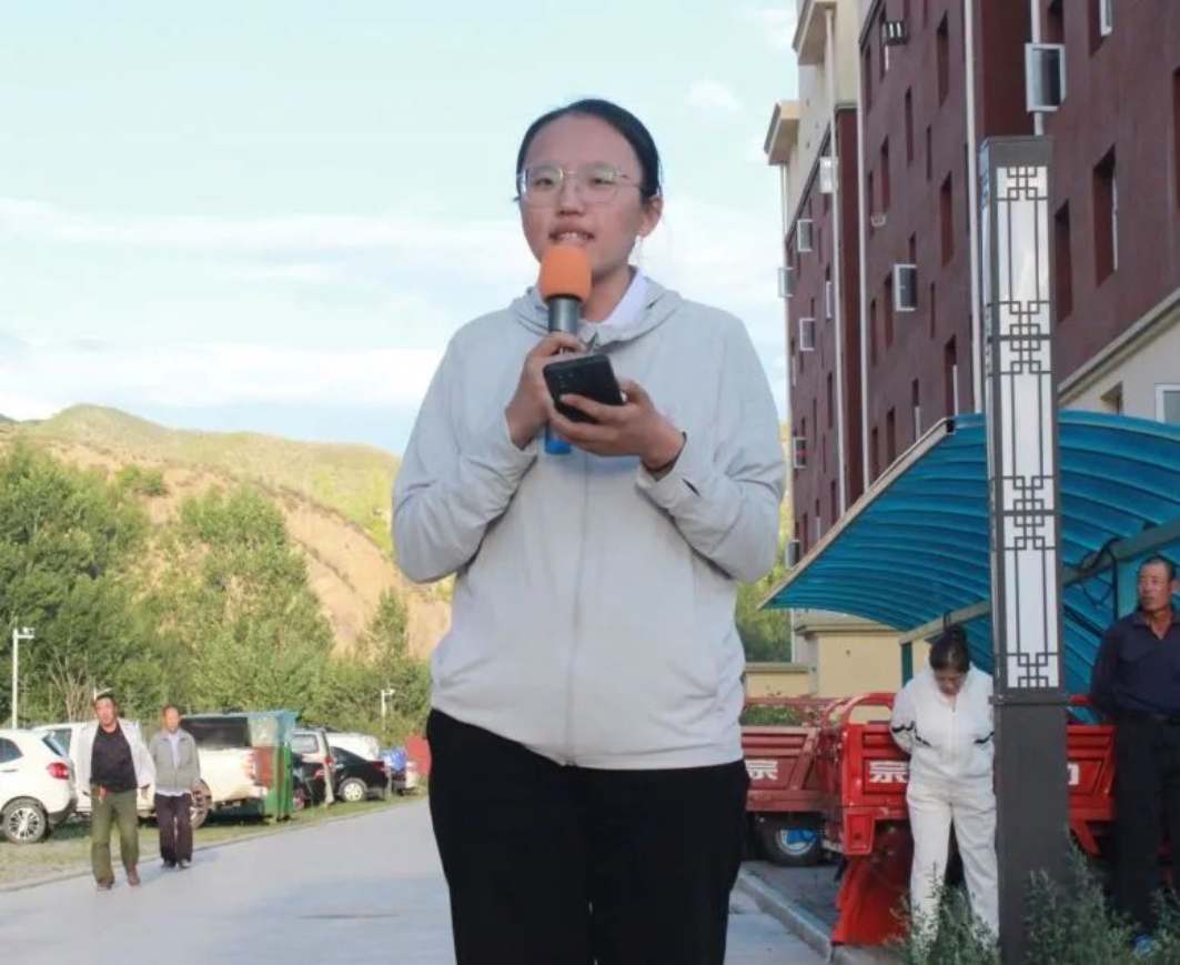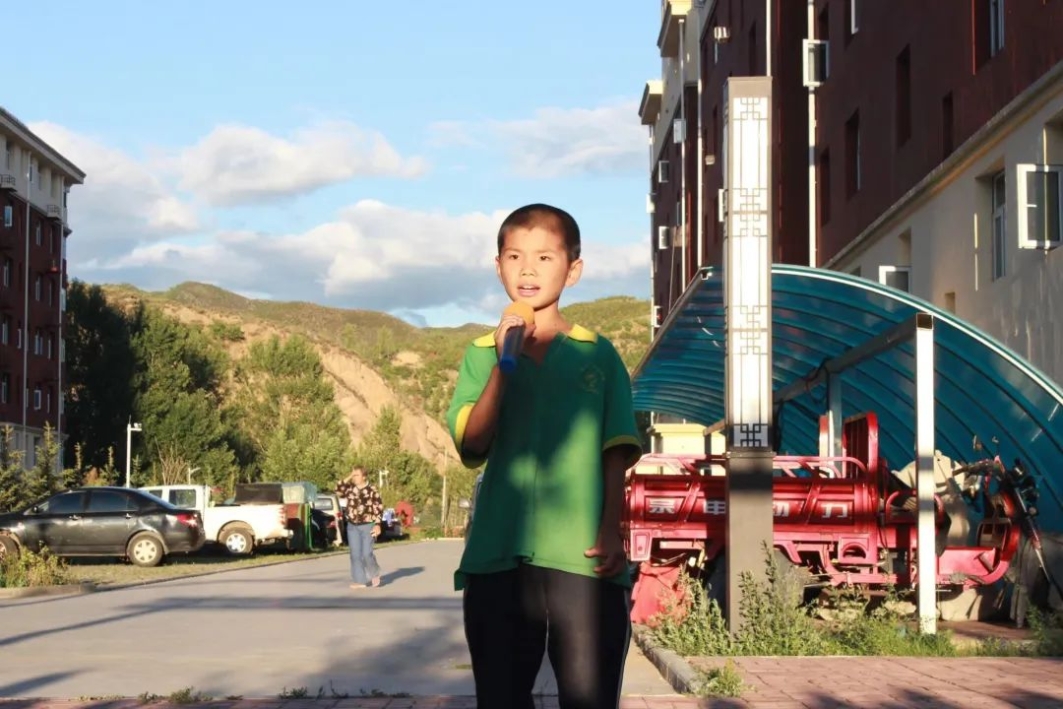 晚会即将开始,安和佳苑的广场上,老老少少的居民们从四面八方相约赶来,yl88858永利官网辅导员王鑫老师带领实践队员们组织引导安和佳苑的居民和镇宁堡中心小学的员工们到表演的观看场地落座。马鑫洋和于鸿玮两位实践队员演唱了歌曲《火红的萨日朗》,在欢快的音乐节奏中,两位实践队员用充满活力的歌声展示青春活力,点燃了晚会的欢乐氛围。