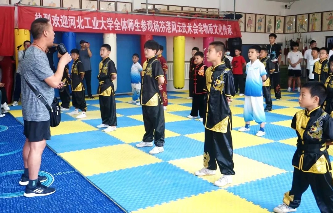 同学们了解到霸州市杨芬港镇风云武术会属于少林门派,成立于清朝康熙元年,由河南嵩山少林寺弟子武伯达创建,历史悠久,是霸州市非物质文化遗产,发展至今门徒众多。