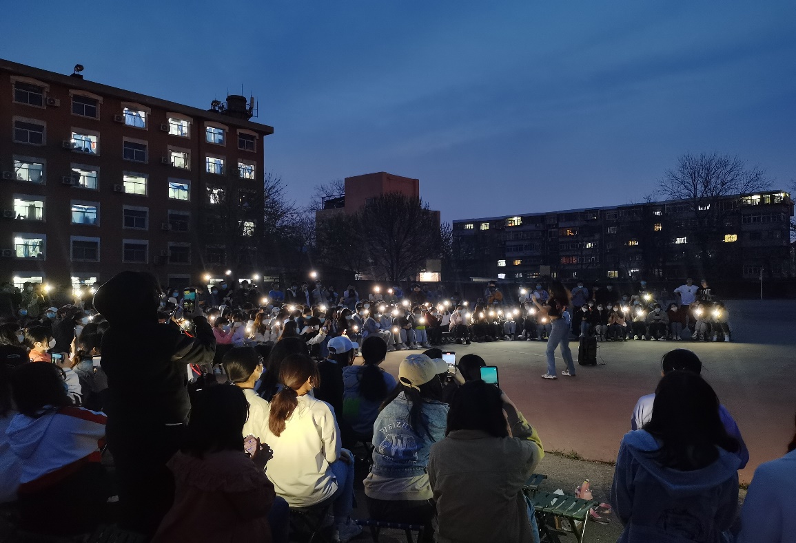 草长人间,莺啼四月。在这个普通却又独特的傍晚,少年们在落日余晖下相聚,用歌舞唤起校园暖春的祥和与惬意;当清月初绽,你我点亮手中的灯光,在夜空下随着韵律挥舞摆动,祈愿少年热忱不减,希冀今日津门皆安。