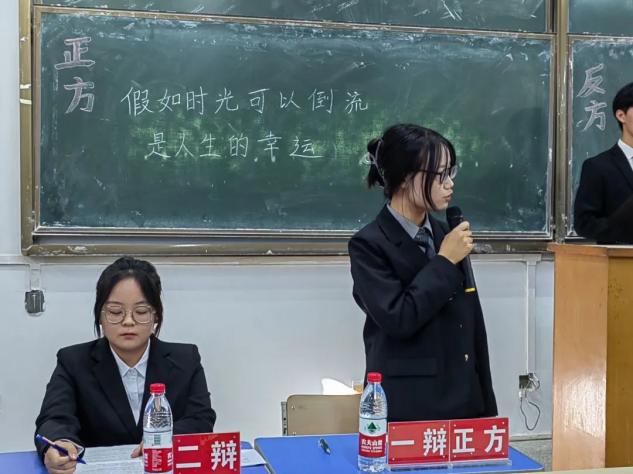 “像每一滴酒回不了最初的葡萄,我回不了年少。”大概每个人都幻想过时光倒流,去改变决定人生走向的某个选择,去收回那句令人伤心的话,去见某个重要人的最后一面。但如果时光可以倒流,真的是人生的幸运吗?正反方对此展开了激烈的辩论。正方辩手持“假如时光可以倒流,是人生的幸运”的观点;而反方辩手则持“假如时光可以倒流,不是人生的幸运”的观点。