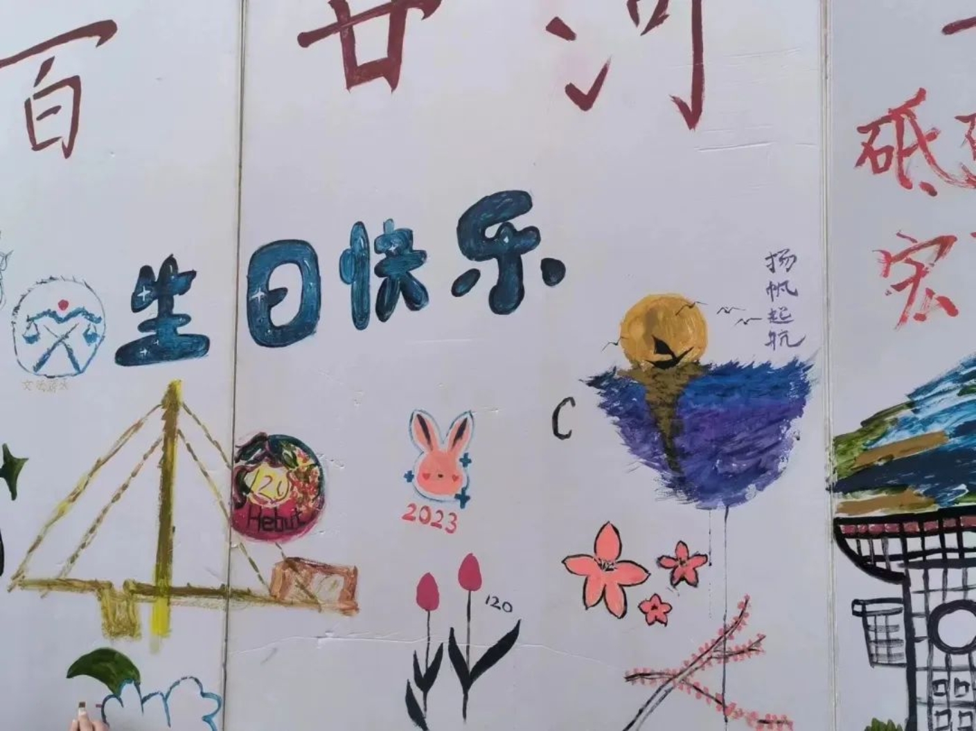 “名公绎思挥彩笔,驱山走海在眼前。”自由而写意,是不拘一格的创意,是万物为笔的洒脱,是生活与灵感碰撞而点燃的火花。同学们积极主动地参与涂鸦活动,充分发挥大家的个性和艺术创造力,用艺术的色彩为传递对母校的美好祝福,以鲜明的艺术才情和昂扬的精神面貌献礼母校一百二十华诞!一步一个脚印,都镌刻着脚踏实地的力量;一年继一年喜人的发展,都酝酿成如诗如画的辉煌。今日学子莘莘,明朝桃李满园。岁月漫长,共同成长,蓝图共绘,整装再出发。