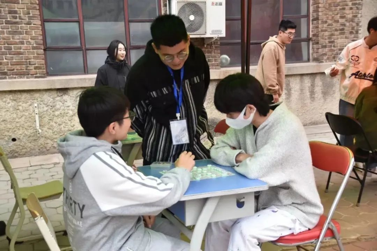 横竖纵横局中山河、乌鸦鹭鸶捭阖无忌。同学们执子弈棋,眼神笃定若有所思,行一步想三步。今天的比赛里,没有人执着输赢,每一手都在向母校祝福。紧张刺激的竞技性比赛氛围和充满趣味性的比赛形式,对坐共弈的人一个一个轮换,落子不悔,肆意穿插于世之大局。