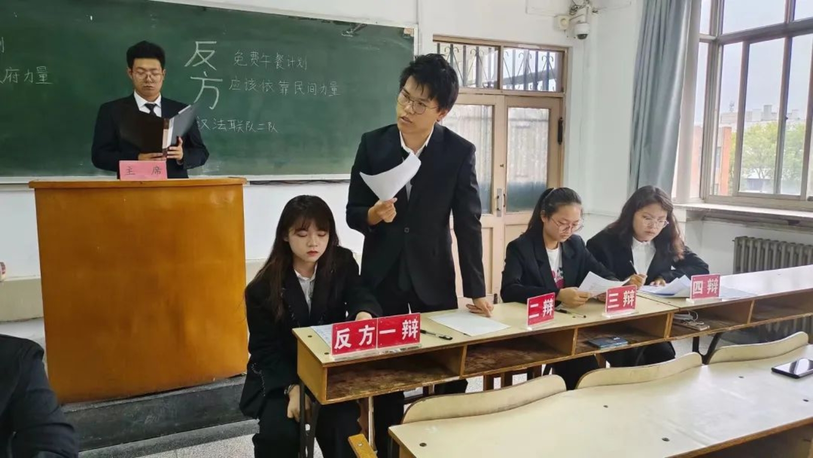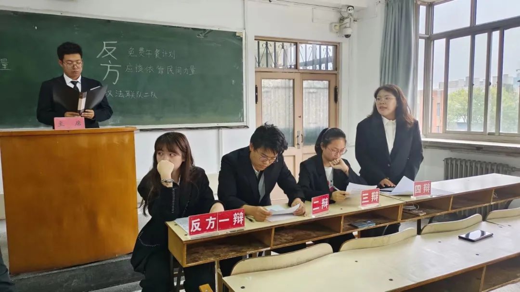 免费午餐计划倡议为贫困学童提供免费午餐,可从长远来看,对计划的保障主要该由何方承担,引起了大家的广泛关注。正方和反方围绕“免费午餐计划应该主要依靠政府力量还是民间力量”展开辩论。正方认为免费午餐计划应该主要依靠政府力量,因为政府拥有更多的资金和更安全的保障,并且已经有了许多成功的经验;反方则认为免费午餐计划应该主要依靠民间力量,民间力量更具灵活性,具有及时发现和跟进的优点。双方立场坚定、论据充分,经过激烈的辩论,最终正方获胜,正方一辩檀若楠获得“最佳辩手”称号。