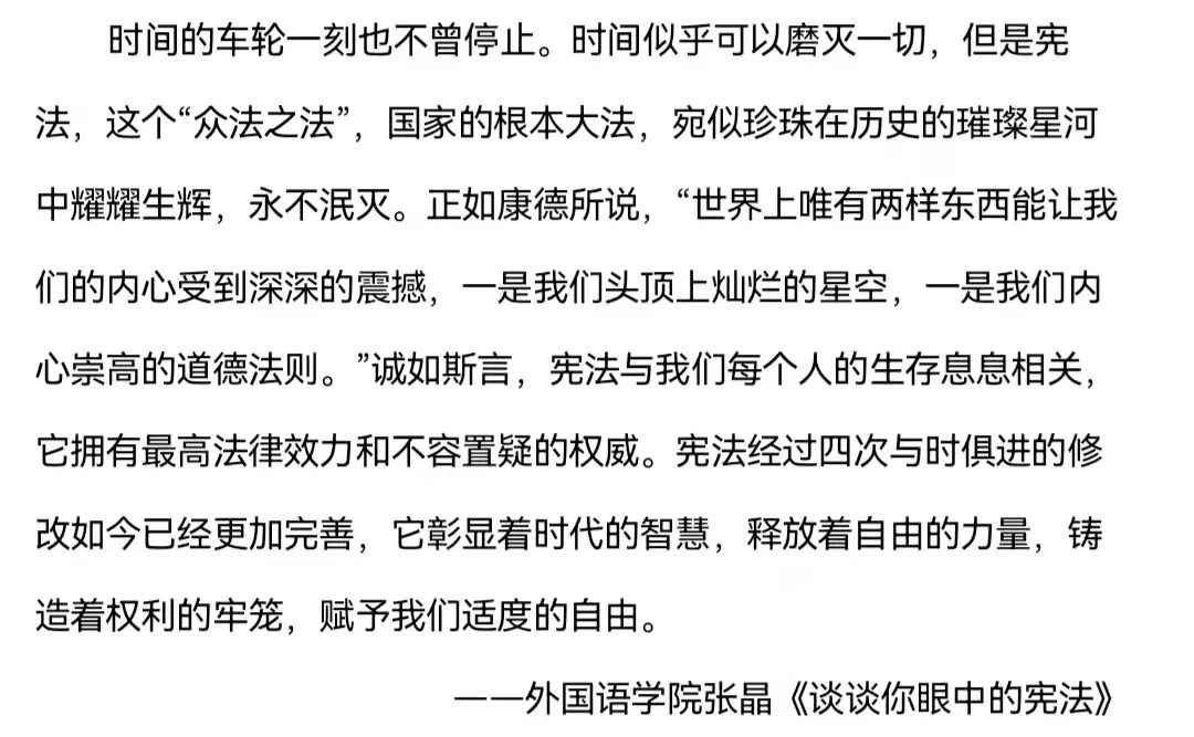 集团的相关组织还举行了“宪法走近你我”征文活动和“我与宪法”微视频征集活动。活动聚焦于员工对宪法学习的感悟、对宪法与生活联系的认识,增进了员工与宪法之间的联系与认同感。