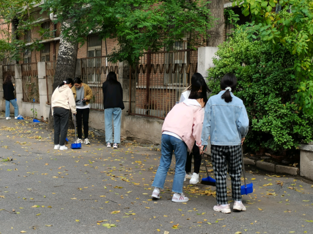 教室里也有我们志愿者的身影。且看她们在课桌与过道中灵活穿行,将桌椅擦拭得干干净净。在这日复一日、人来人往的轮转之中,只要有人能伸出手来维护环境,我们的教室就能永远以清洁的面貌迎接同学们。