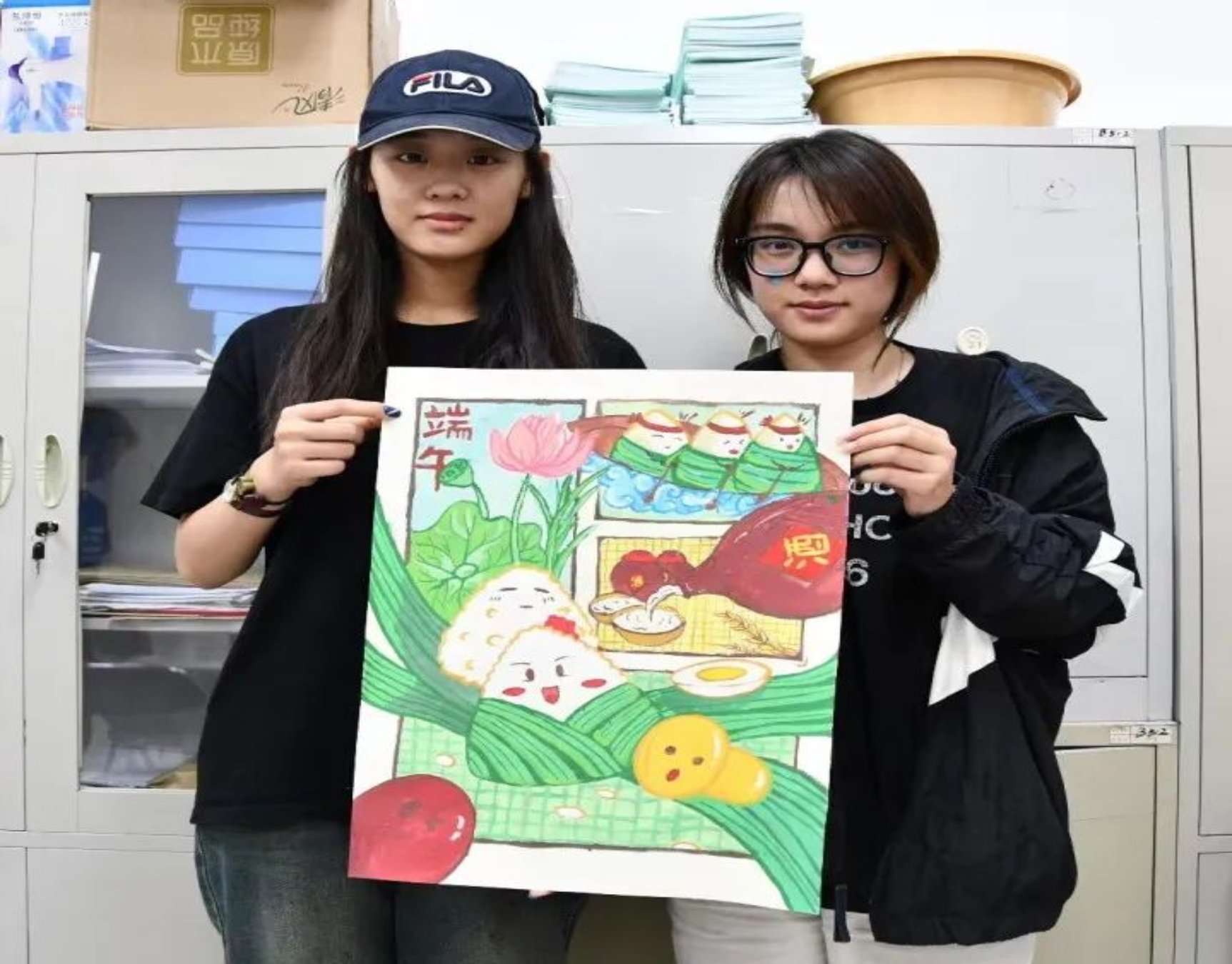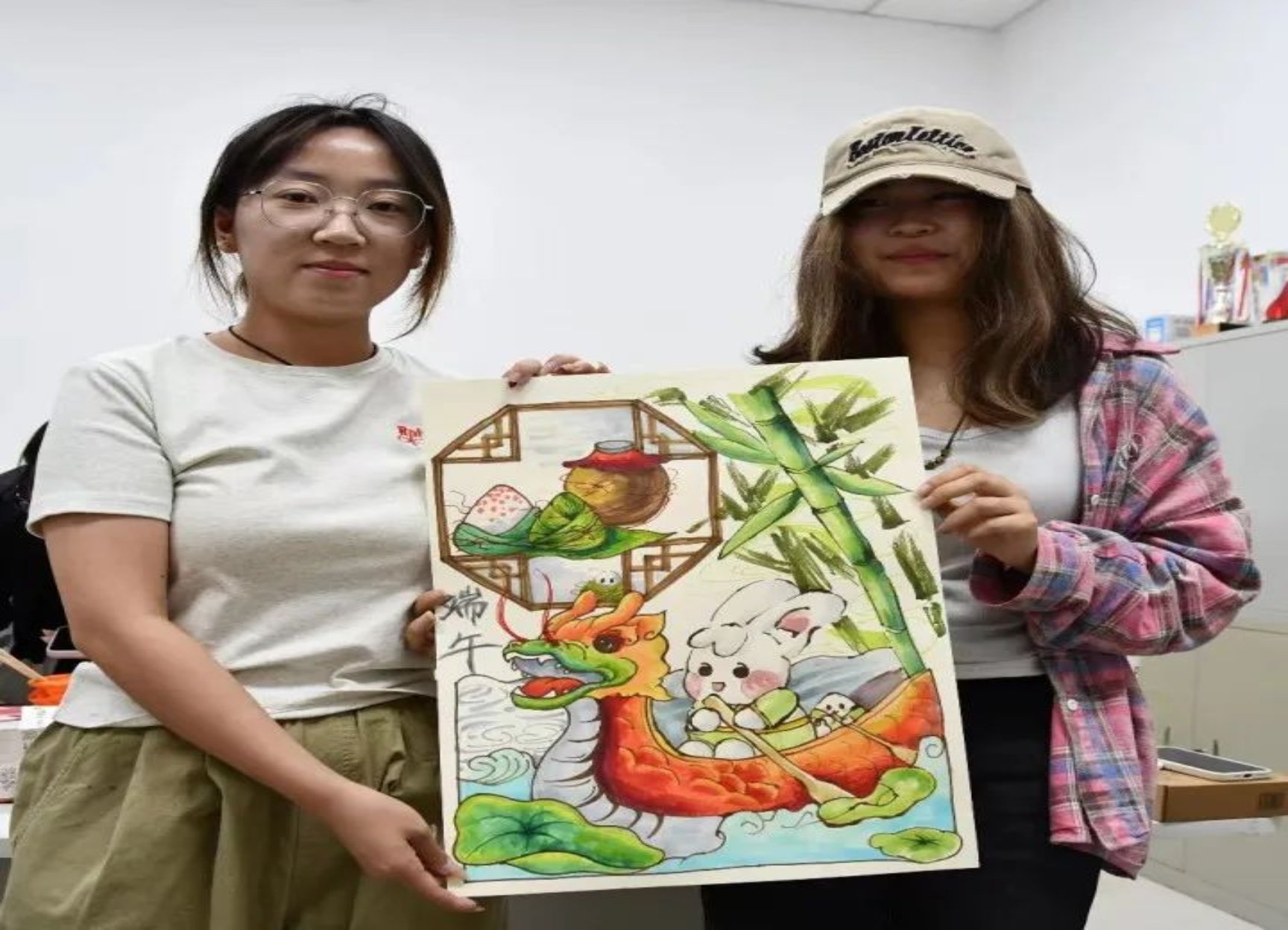 建筑与艺术设计公司的11名同学也来到活动现场,他们将自己对传统节日文化的感悟付诸笔端,用清新亮丽的色彩用心绘制着赛龙舟、包粽子、插茱萸等端午习俗场景,表达了他们对优秀传统文化、中华瑰宝的热爱。