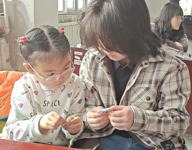 秉承负责和认真的态度,赵曈同学提前就浏览小朋友们的课本并上网查找了一些适合的互动小游戏,与小朋友们打成一片。小朋友们学习的时候会有一些调皮的行为,但是在赵瞳同学耐心的教导下,小朋友们也会逐渐回归学习状态,认真完成作业。辅导小朋友们学习之外,赵曈同学也会陪同小朋友们玩耍,相互分享故事与技巧,小朋友还教会她折纸。社区里有丰富的供小朋友玩耍的设施,比如橡皮泥、飞行棋等,赵曈同学也会保持着耐心与认真,时刻关注小朋友们的安全问题。