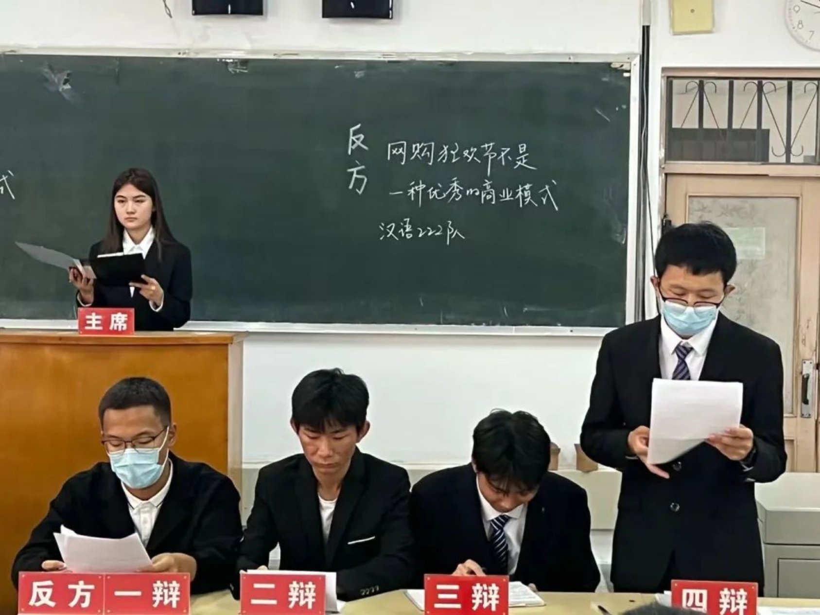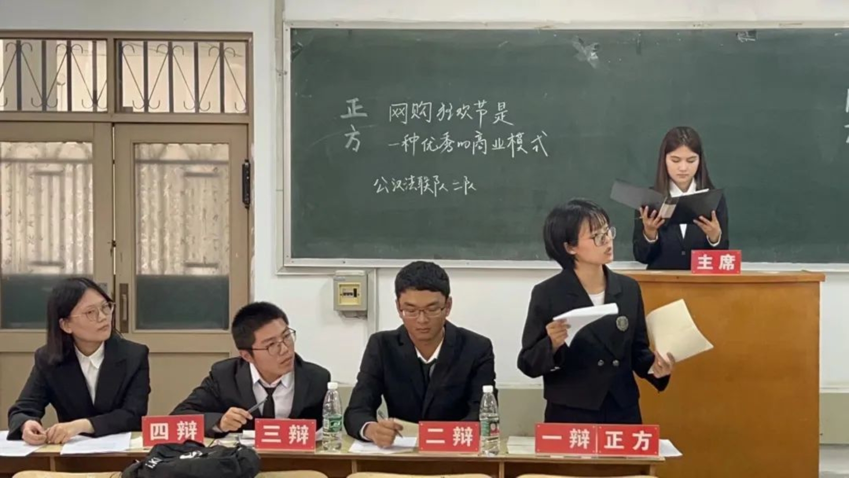 互联网技术的发展和网购的兴起促使“618”、“双十一”等网络购物狂欢节纷纷涌现。正方和反方围绕“网购狂欢节是不是一种优秀的商业模式”这一辩题展开辩论。正方认为网购狂欢节使消费者便利,让商家盈利,能够更好地促进社会经济发展;反方认为网络购物狂欢节无法避免市场的滞后性,而且具有隐私性差、风险高的缺点,难以做到经济效益和社会效益的统一。经过一场激烈的雄辩,最终正方更胜一筹,正方四辩张炯怡成为本场“最佳辩手”。