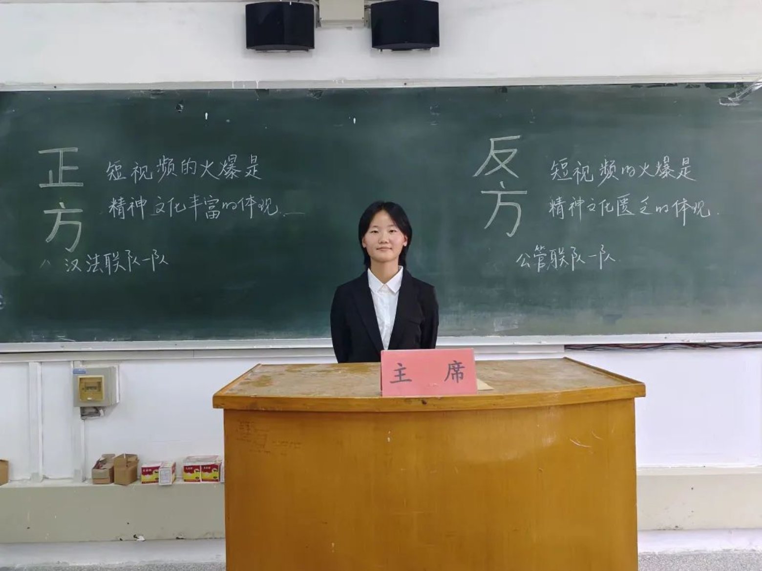 随着自媒体时代的到来,短视频作为一种新兴的网络信息传播方式,逐渐深入我们的生活。正方和反方围绕“短视频的火爆是精神文化丰富还是匮乏的体现”展开辩论。正方认为短视频的火爆是精神文化丰富的体现,其多元化的特点为大众提供了更多分享生活的平台,让更多人能够通过媒体了解更多自己感兴趣的内容;反方则认为短视频的火爆是精神文化匮乏的体现,当人们养成把浏览手机短视频理所当然的习惯,便不能静下心来读书品茶,这会给人民的精神文化造成巨大损失。双方你来我往,辩论激烈,切中要点。最终,正方获得胜利,最佳辩手”为正方三辩李舒翰同学。