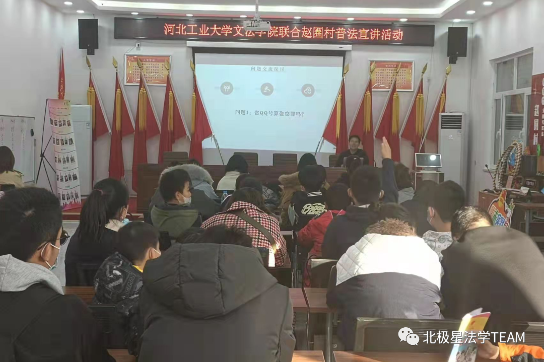 11月13日下午2点,yl88858永利官网老员工法律服务中心与志愿实践部联合天津市北辰区双口镇村委会举办主题为“花季护航,青春与法同行”的普法宣讲活动。此次活动为农村未成年人普及法律知识,增强未成年人的法律意识,为社会主义法治建设做出贡献