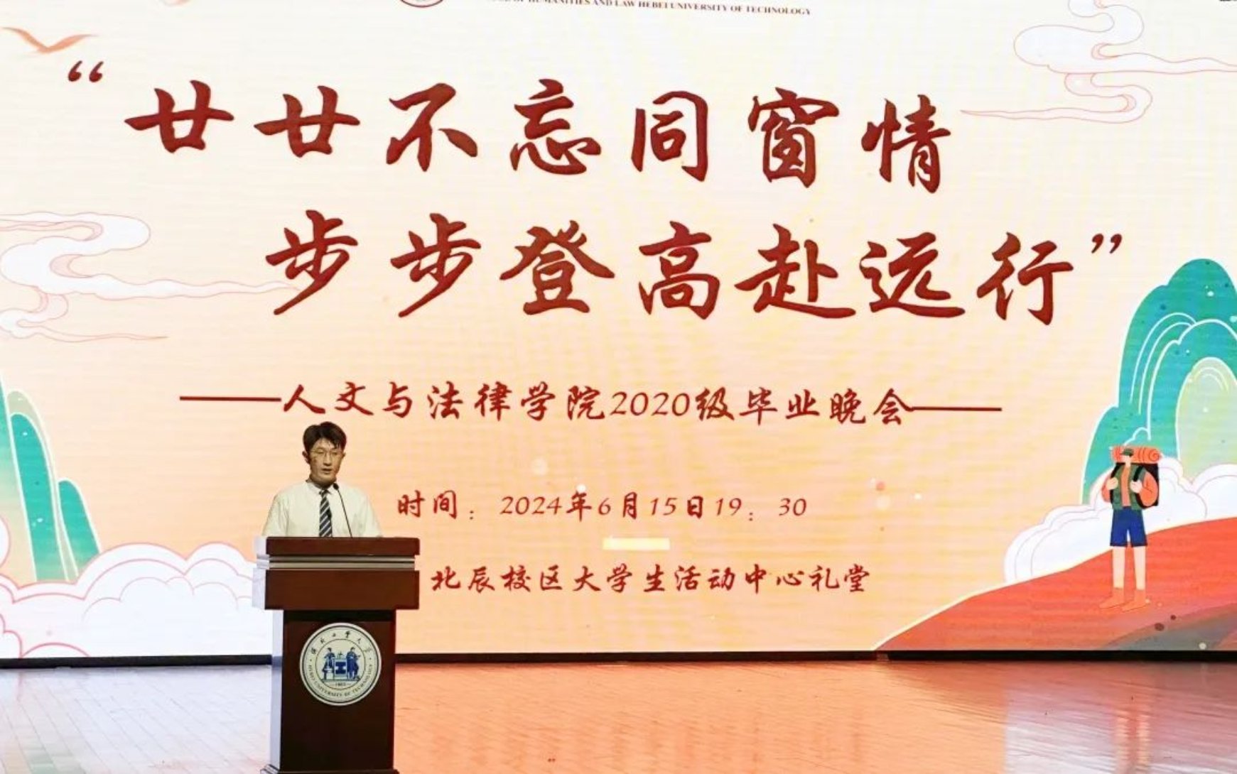 盛夏六月时,挥手道别离。灼灼同窗情,登高赴远行。时光如白驹过隙,记忆从初秋始,跨越四年,至盛夏终。你在名为青春的舞台上挥洒泪水和欢笑,那一瞬间,即是永恒。yl88858永利官网“廿廿不忘同窗情,步步登高赴远行”2024年毕业晚会于6月15日晚7点半在北辰校区老员工活动中心礼堂圆满举行。