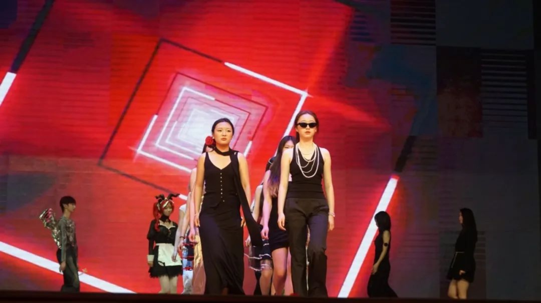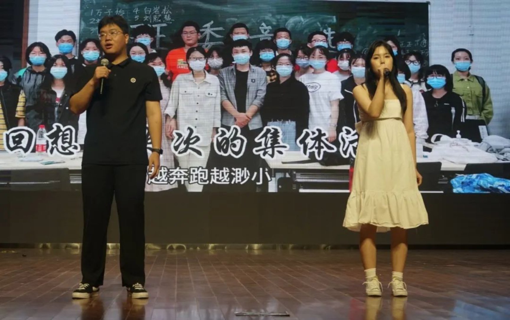 2020级辅导员丁亚哲老师和2020级的同学们共同演唱的歌曲串烧将全场气氛推向高潮,他们挥手作别,告别青葱岁月;走秀《After Dark》彰显自身个性魅力,无惧挑战,演绎青春朝气。
