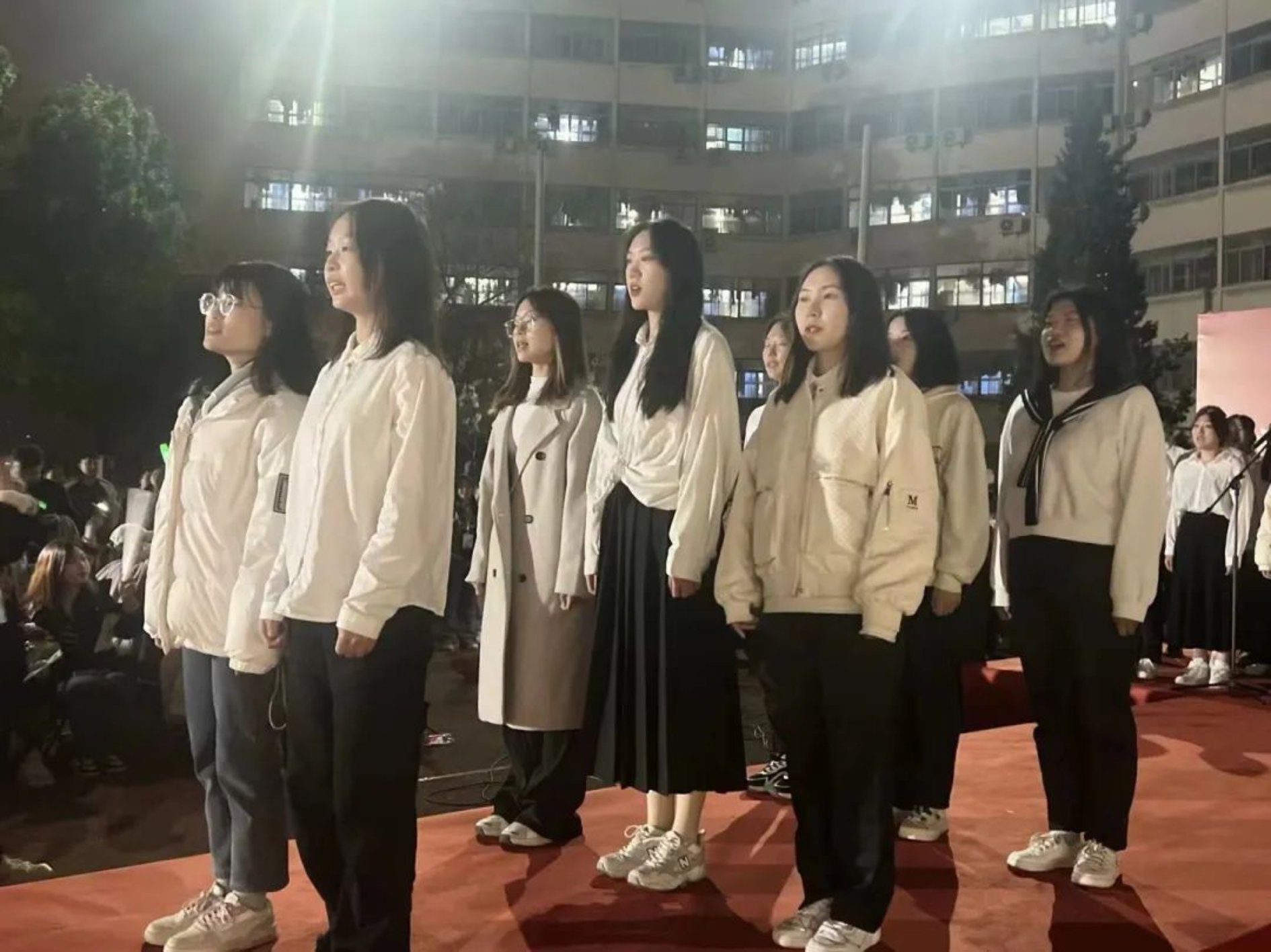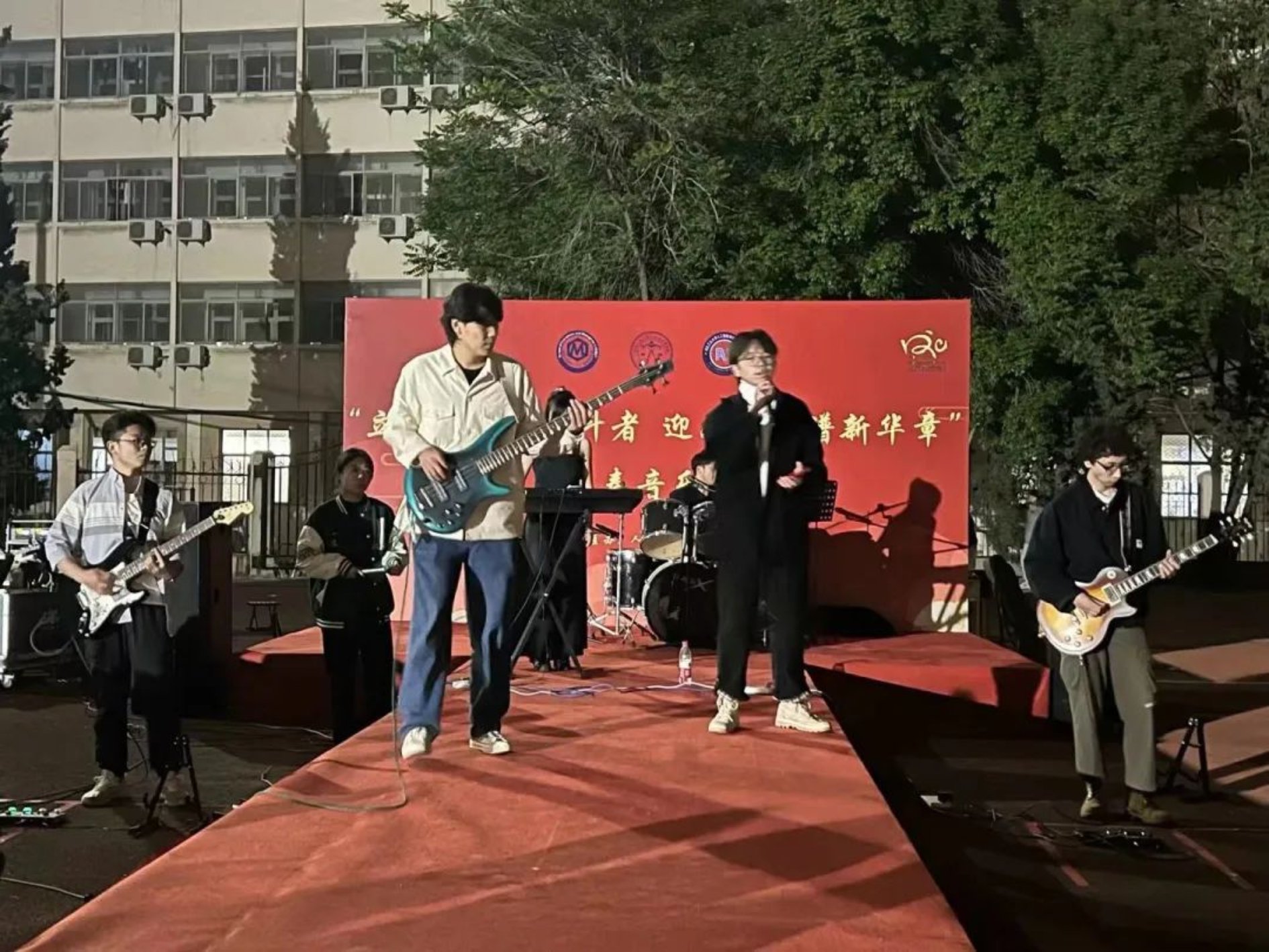 由痕迹乐队带来的歌曲串烧,让同学们都情不自禁地跟随着吟唱起来。