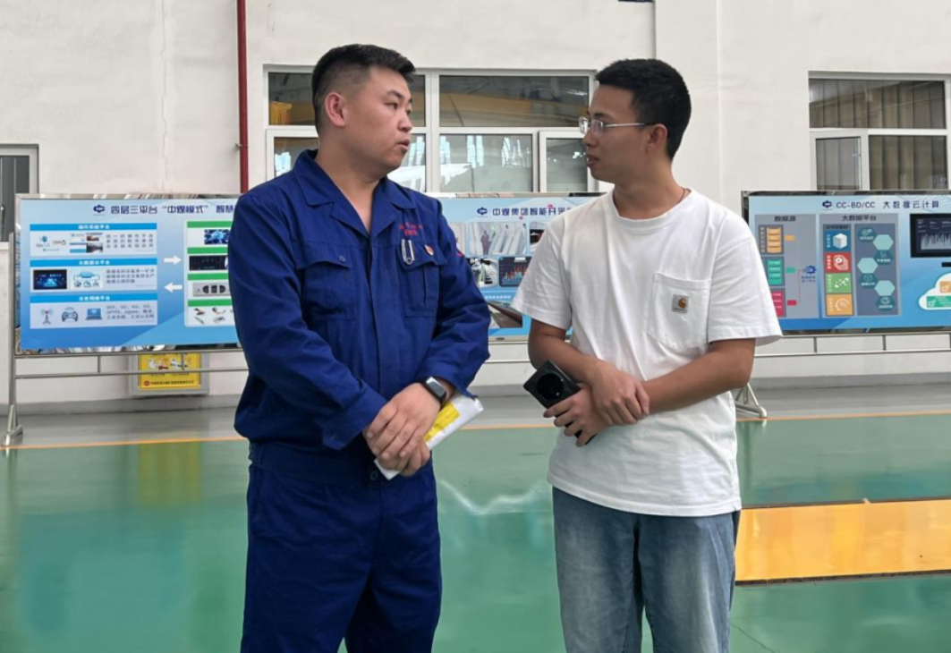 薪火实践队队员在参观的过程中,采访到了公司2010级优秀员工中煤张家口煤矿机械有限公司党委工作部部长刘剑。学长结合自身的学习和工作经历,和学弟学妹们分享了如何将理论与实践相结合的方法以及党建工作对于企业管理的重要性,鼓励学弟学妹们刻苦学习、勇于实践,将在公司学习到的知识转化为实际工作的能力,为国家的建设源源不断地贡献工大的青年力量。