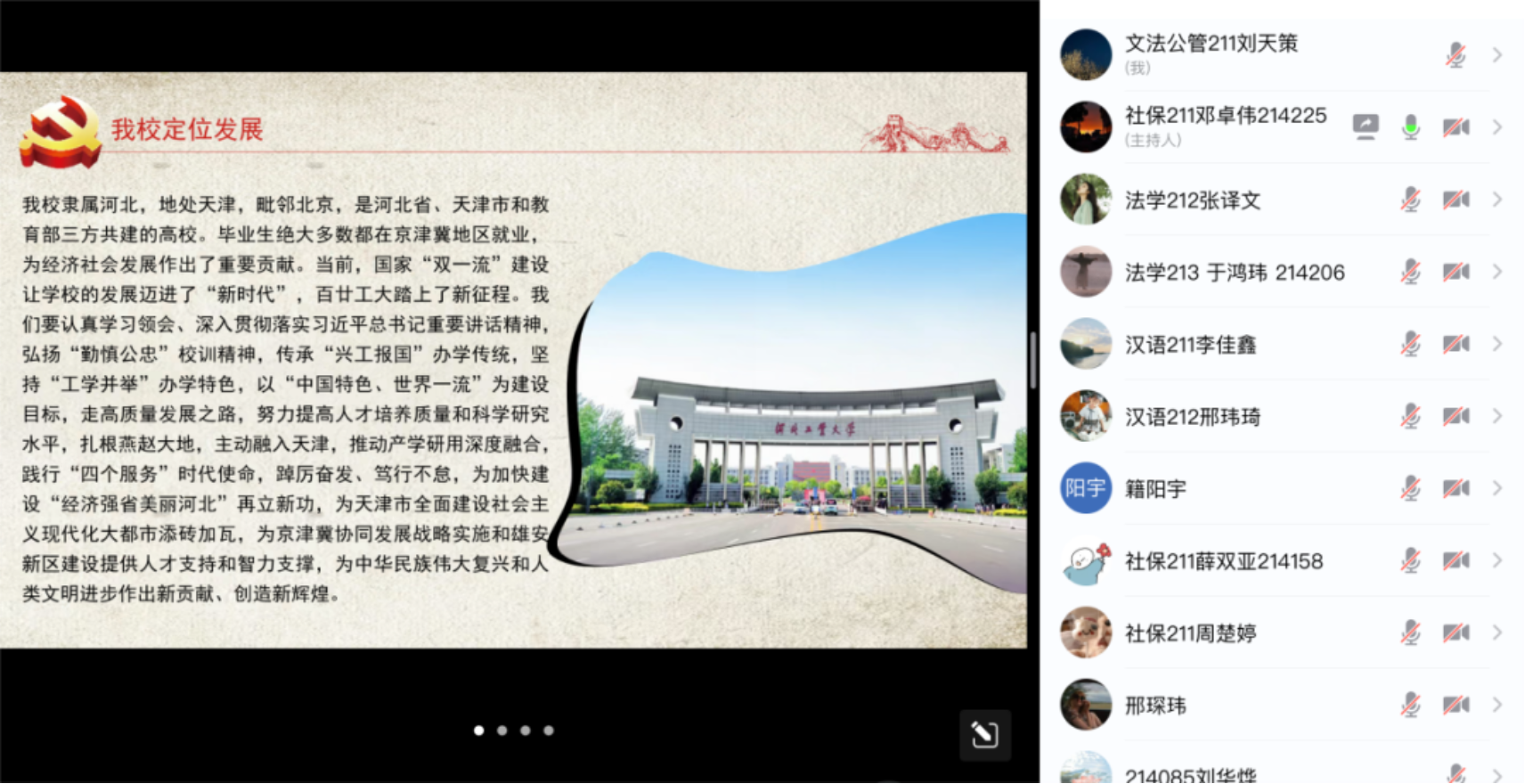 此外,各年级辅导员于3月9日分别开展了一次线上家长会,邀请全体同学和家长共同参加,以走“心”又走“新”的方式深入宣传习近平总书记重要讲话精神,并介绍了习近平总书记视察天津的路线与重要意义。同时,辅导员老师们还立足公司发展定位,鼓舞同学们接续奋斗,共创辉煌。在最后,员工和家长代表分别分享了学习感悟和心得,为会议画上了圆满的句号。