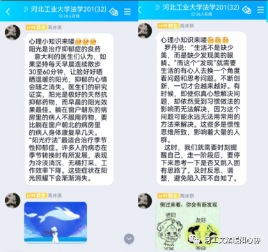 积极参加各种心理活动,如:心理委员培训、“寒假和家人在一起的那些心事儿”、朋辈倾诉系列讲座、心理情景剧剧本大赛、心理委员素质拓展、心理小讲师、心理主题剪贴画、心理演讲比赛等。