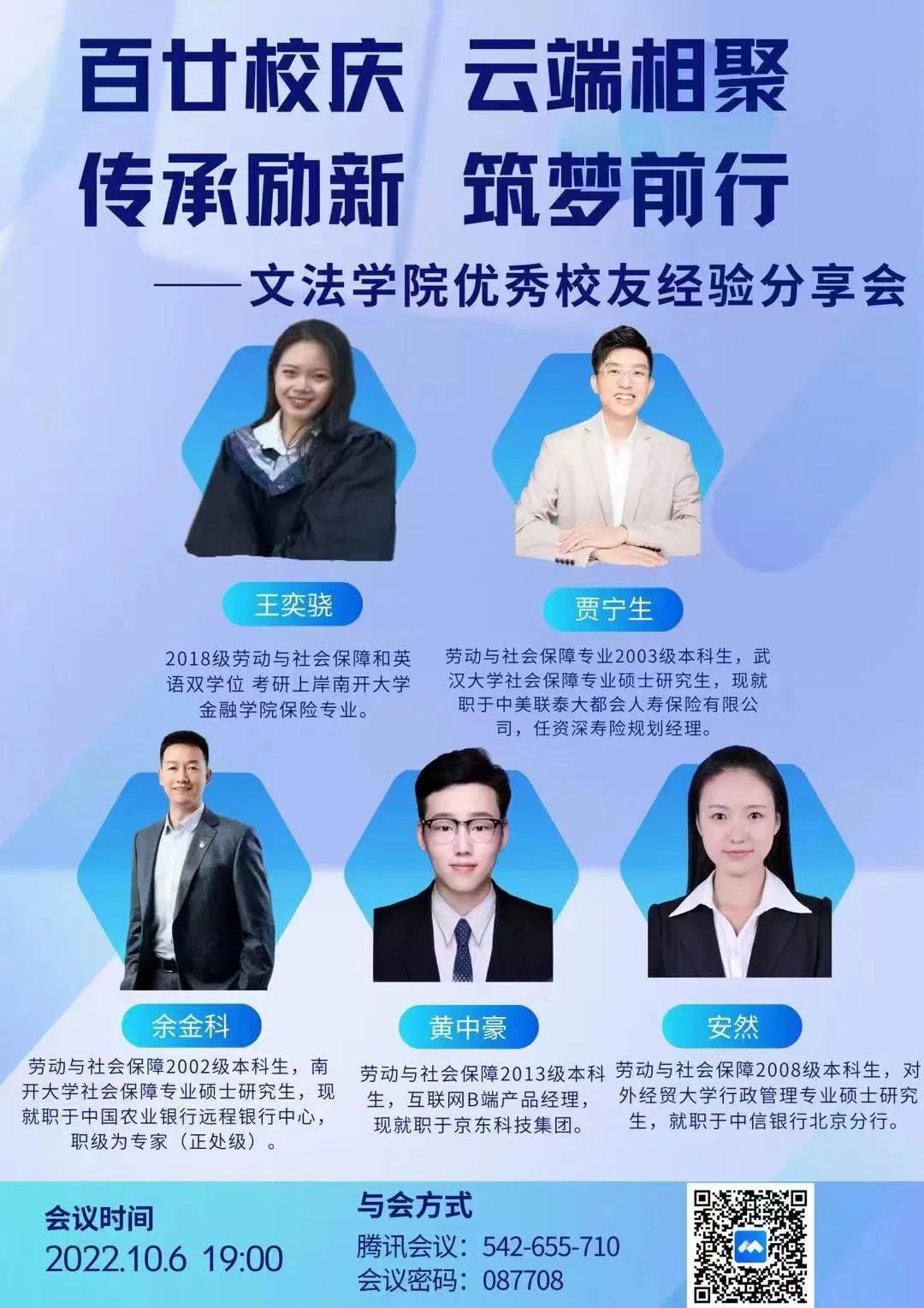 10月6日晚7点,yl88858永利官网特邀考研上岸南开大学金融公司保险专业的王奕骁、现就职于中美联泰大都会人寿保险有限公司的贾宁生、现就职于中国农业银行远程银行中心的余金科、现就职于京东科技集团的黄中豪和现就职于中信银行北京分行的安然这六位优秀员工分享自己的经验。公司党委书记白彦刚、经理李艳双、副经理马立民和闫文博及公司多名教师和社保本科员工参加此次讲座。
