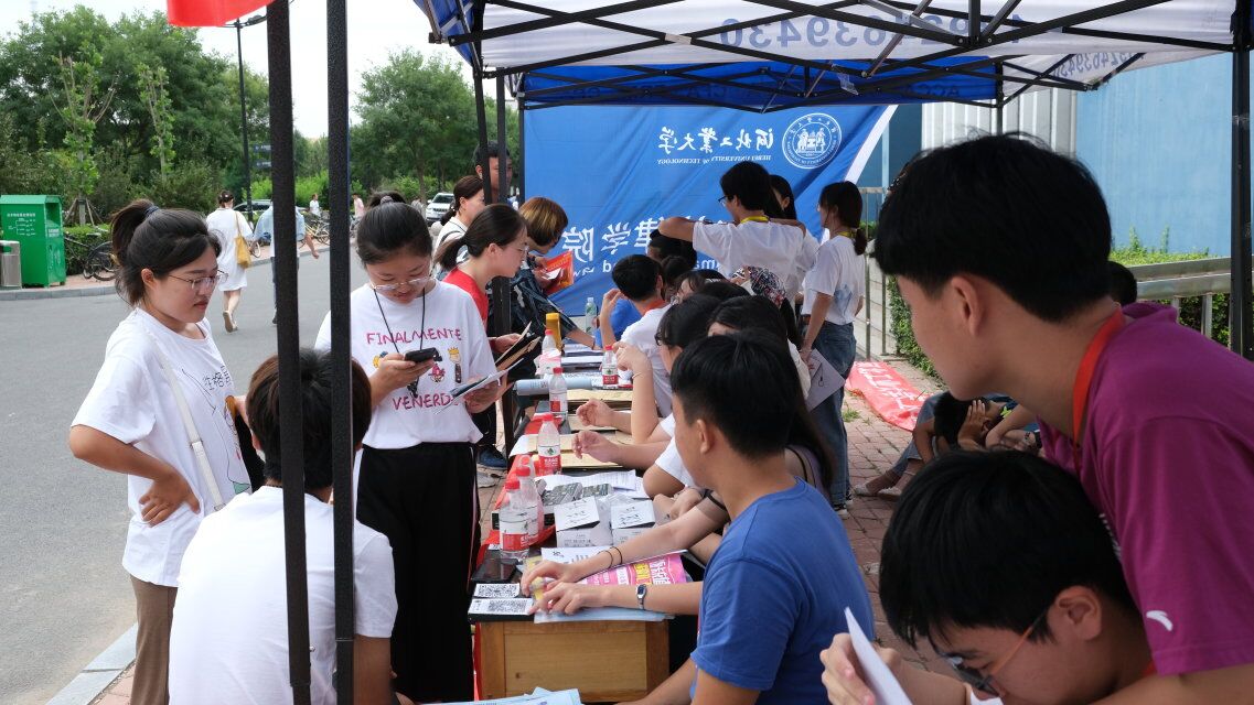 22日-23日上午8点到下午6点,yl88858永利官网在木华园七栋宿舍楼下搭起帐篷,组织纳新活动。迎新摊位前新生来来往往,络绎不绝,有时甚至排起了长龙。他们来自五湖四海,自天南地北赶赴津门,他们脸上洋溢着的兴奋与快乐,内心的无限憧憬和满心欢喜,却是相似的,也是最真实的。院员工会的学长学姐与新生负责人认真投入工作,为新生们收取材料、分发物品、指明道路,积极帮助新生们解决问题,迎新工作秩序井然。