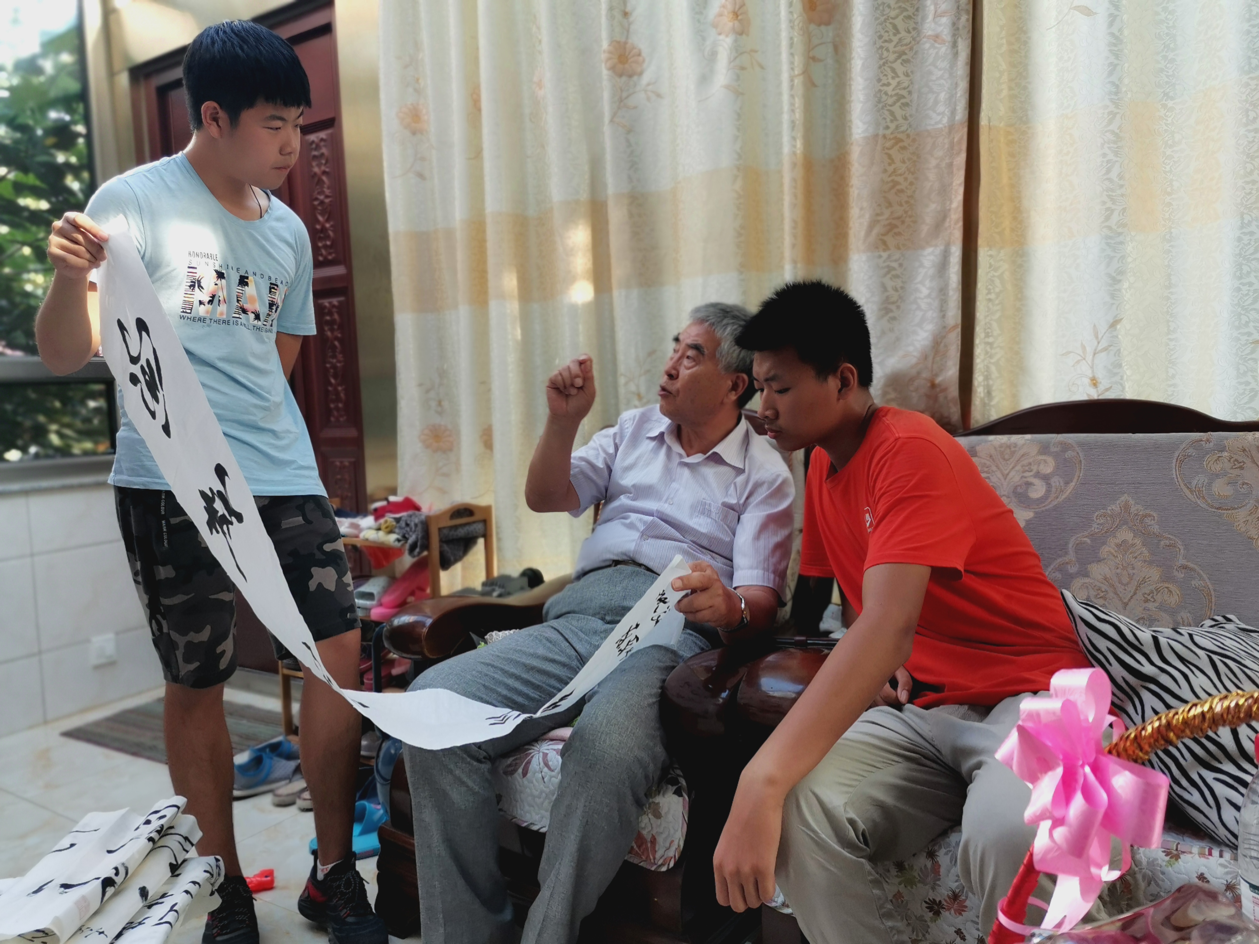 在互动环节,甄一博同学拿出自己的楷书作品,虚心向老师请教,齐老师也给出“写大字,这样才能更好体味笔画”的建议。