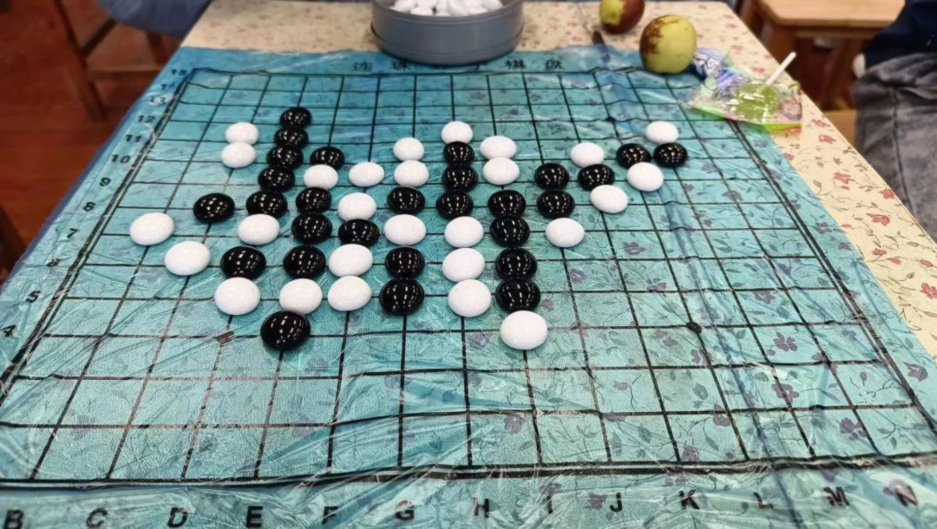 东院五子棋比赛分成ABC三组,A组34人,B组34人,C组10人。