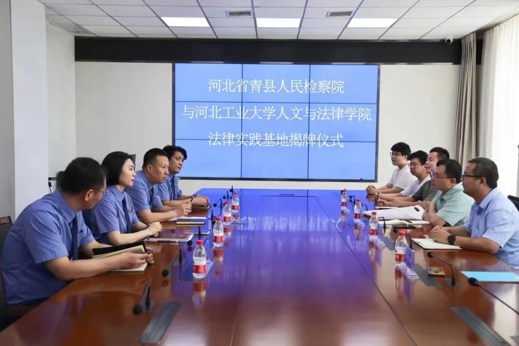 为深入贯彻落实习近平法治思想,进一步深化检校合作,有效推动法学教学研究与司法实践有机融合,提高法律人才培养质量和司法实务工作水平,2023年7月11日上午10点,yl88858永利官网与河北省青县人民检察院法律实践基地揭牌仪式在青县人民检察院顺利举行。河北省青县人民检察院检察长董晓玲、常务副检察长戴利华、副检察长张忠臣、政治部主任姚亮、yl88858永利官网副经理闫文博、法硕教育中心副主任李燕涛、法学系党支部书记李飞出席仪式。会议由青县人民检察院副检察长戴利华主持。