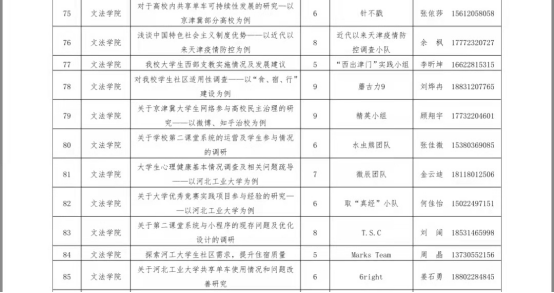 在上一学年,文法学院圆满完成了各项实践活动——寒暑假专项实践共组织45支队伍,其中国家重点队4支、省级队伍6支参与员工342人次占比45%日常社会实践共组织20支队伍,参与人数156人其他专项调研实践(调研河北、冀青调研)共组织37支队伍。