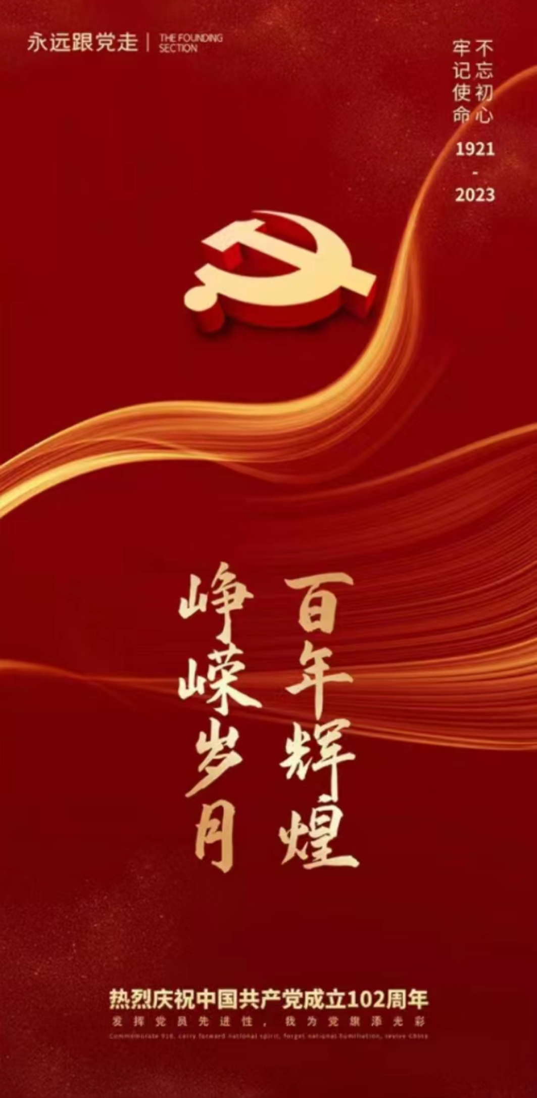走过世纪沧桑,恰是风华正茂。在全面贯彻党的二十大精神的开局之年,我们迎来了中国共产党成立102周年。今天,党的二十大的宏伟蓝图在我们眼前徐徐展开,中国共产党正带领着全国各族人民向第二个百年奋斗目标的新征程进军,共同在新时代的赶考路上书写下不负时代,不负人民的铮铮誓言。