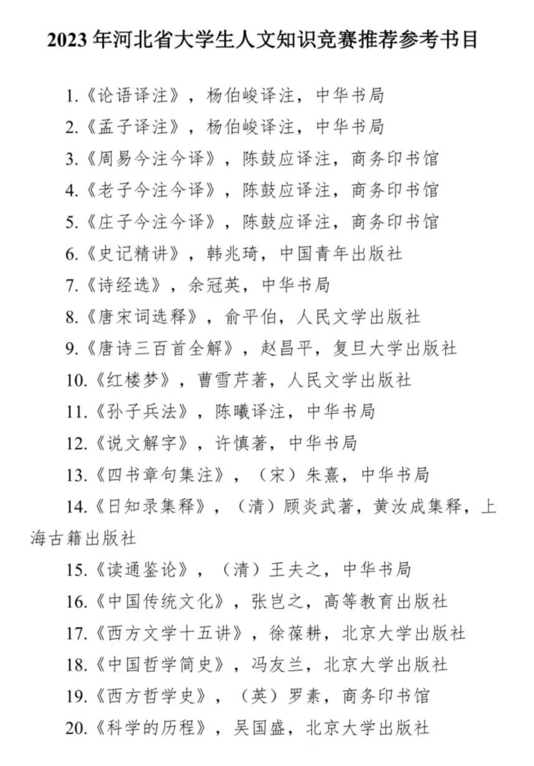 (三)组委会发布《2023年河北省老员工人文知识竞赛推荐参考书目》(见附件),为竞赛提供必要的参考资料与共同的知识框架。