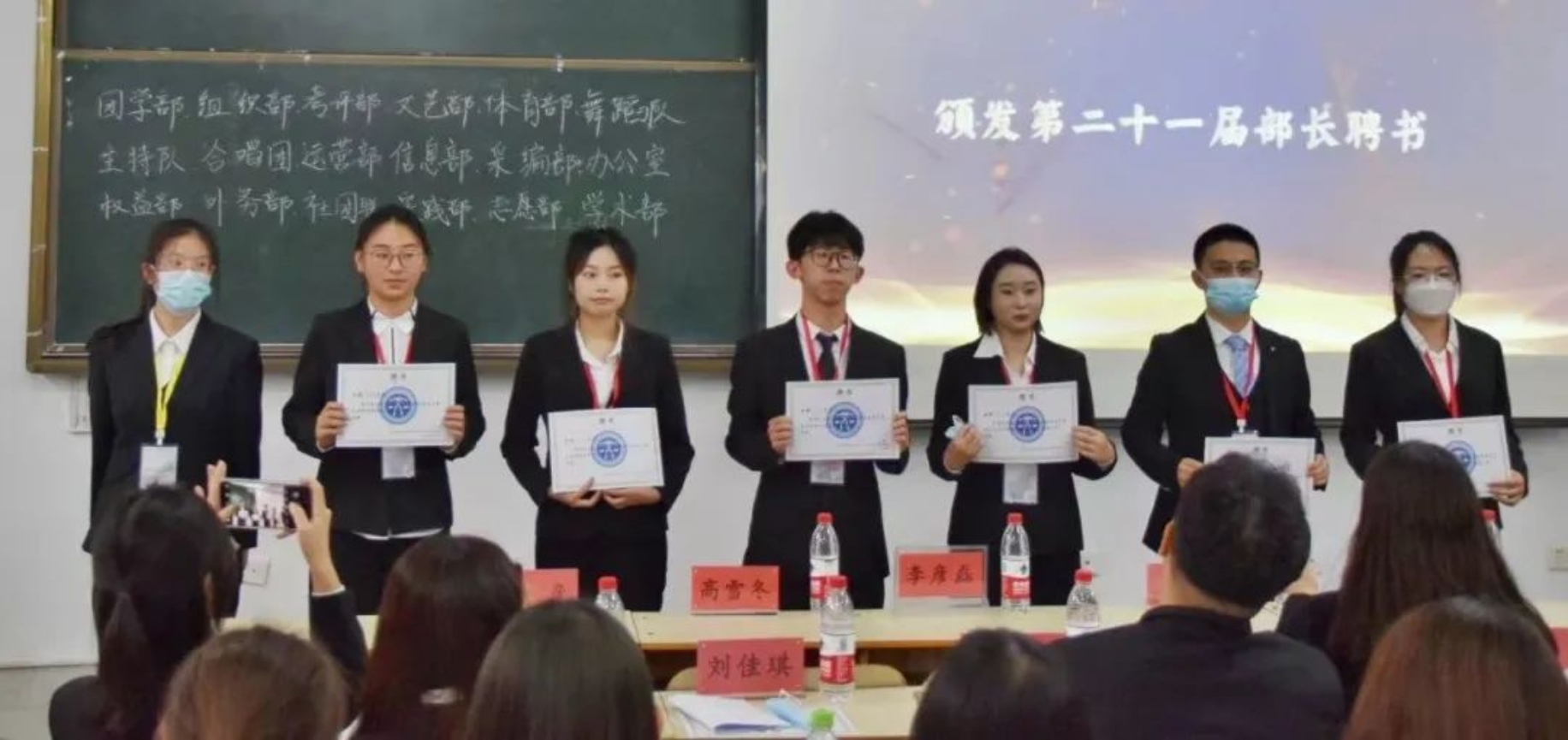 接下来就是激动人心的颁布聘书的时刻。由李彦磊副书记为第二十一届主席团颁发聘书,第二十一届员工组织主席团成员为李云苇、杨宇凡、张想、刘佳琪、李明昱、纪弈舟、韩新泽。
