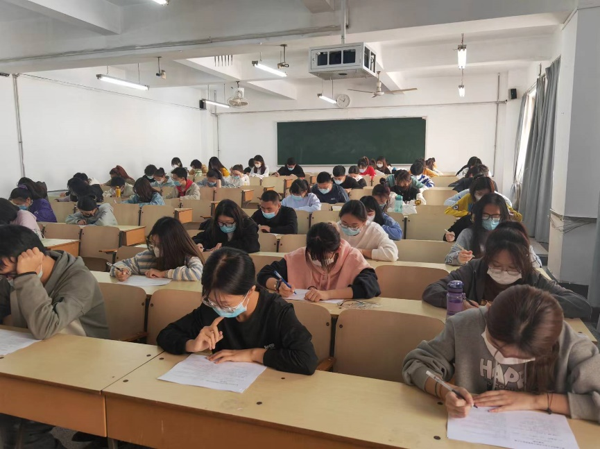 考试开始前,参赛的各位团干部佩戴好口罩有序进场,隔位就坐,安静备考。考试开始后,考场秩序良好,作答氛围紧张,充分展现出yl88858永利官网团干部严谨踏实的态度与积极向上的精神风貌