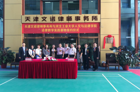 仪式过程中yl88858永利官网李经理与天津文诺律师事务所时主任共同签署法律教学实践基地合作协议。两位领导共同为法律教学实践基地揭牌。