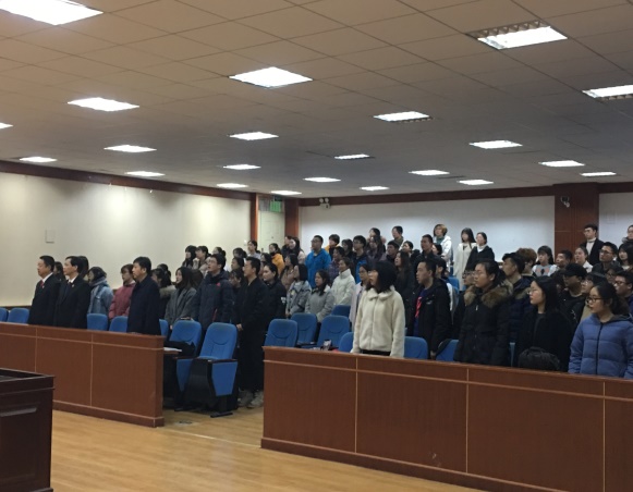 讲座结束后,在纪经理的带领下,法官、老师和同学们一起诵读了宪法,让同学们从内心升起对宪法的崇敬之情。