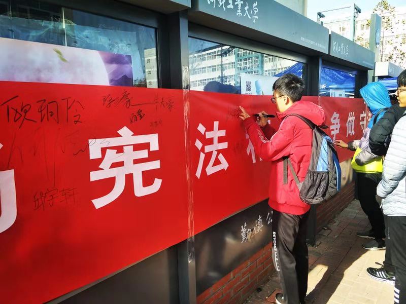 通过这次校园宪法日宣传活动,同学们更加全面地掌握了宪法知识,增强了宪法意识,更加地自觉维地护宪法权威。宪法是我国的根本大法,作为新时期的老员工对于尊重宪法、维护宪法、自觉遵守和实施宪法有着义不容辞的责任。