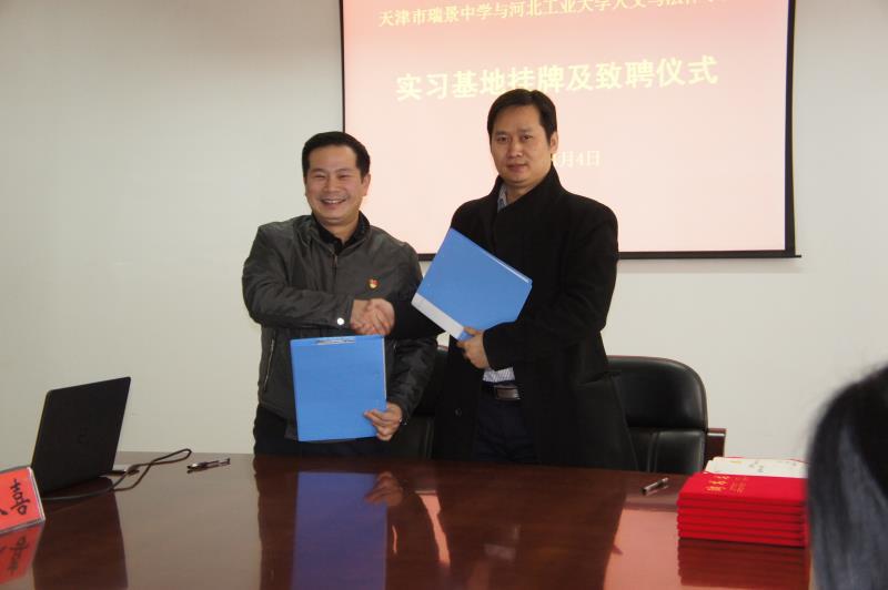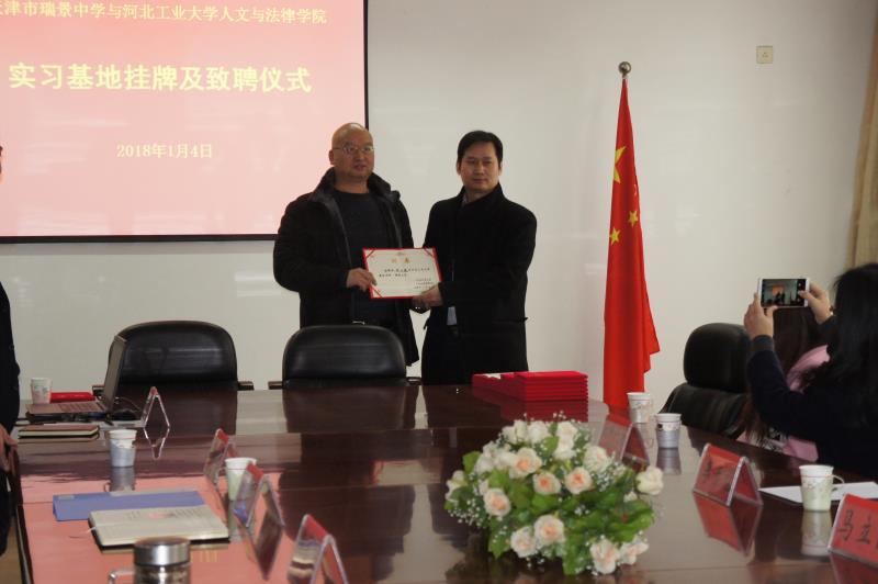 随后,双方进行签约仪式暨聘任仪式,李子彪经理向瑞景中学的领导和语文学科组的老师颁发聘书。