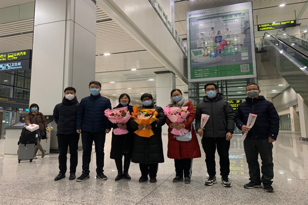 公司51名援疆支教师生圆满完成为期三个月的援疆支教任务。师生们于12月30日晚从新疆和田地区于田县返津,公司党委副书记贺立军及各职能部门领导、公司领导、辅导员等在天津滨海国际机场大厅迎接支教团凯旋。接机领导和老师们为凯旋支教团师生一一献花。