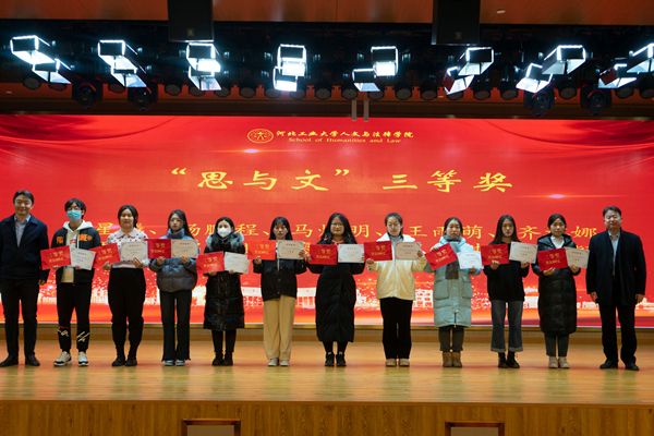 12月17日下午,公司“日新”与“思与文”学术征文比赛颁奖典礼在北辰校区图书馆一楼报告厅隆重举行。公司党委常委、纪委书记孟祥群,公司党委书记白彦刚,经理李艳双,副书记李彦磊,副经理马立民,2009级员工李欢及部分教师代表参加了此次颁奖大会。会议由学工办主任高雪冬主持。