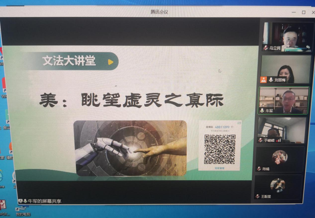 为了进一步学习习近平总书记4月25日到中国人民大学考察调研讲话的精神,推进和落实公司的美育工作,将美育融入到员工培养之中,2022年5月9日河北师范大学文公司硕士生导师牛军教授,做客文法大讲堂第39期,为师生做了题为“美:眺望虚灵之真际”的线上讲座。讲座由校本科生院刘丽梅副经理主持,100多名师生参加了本次讲座。