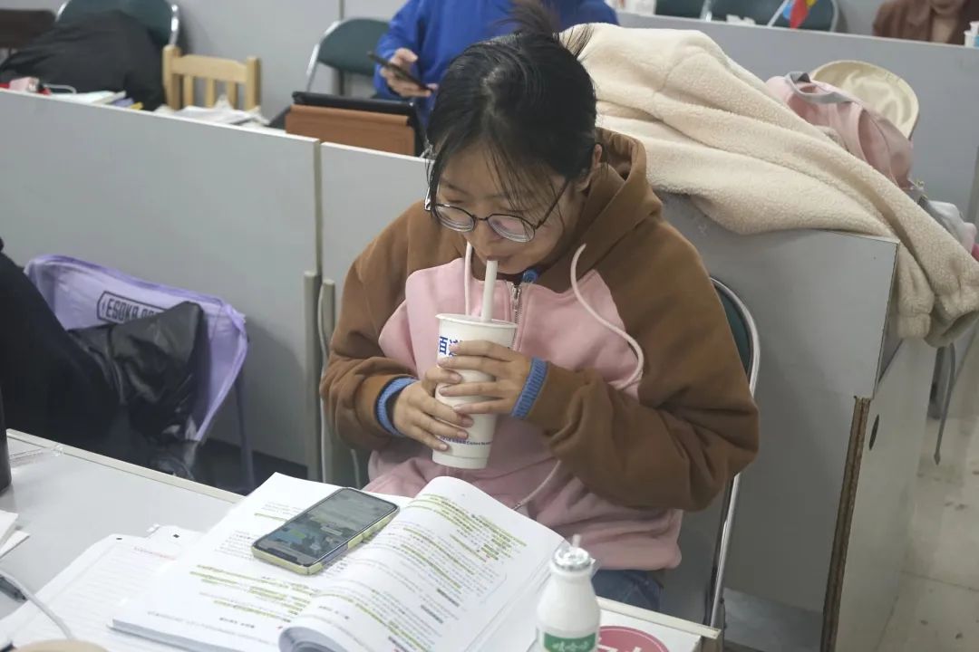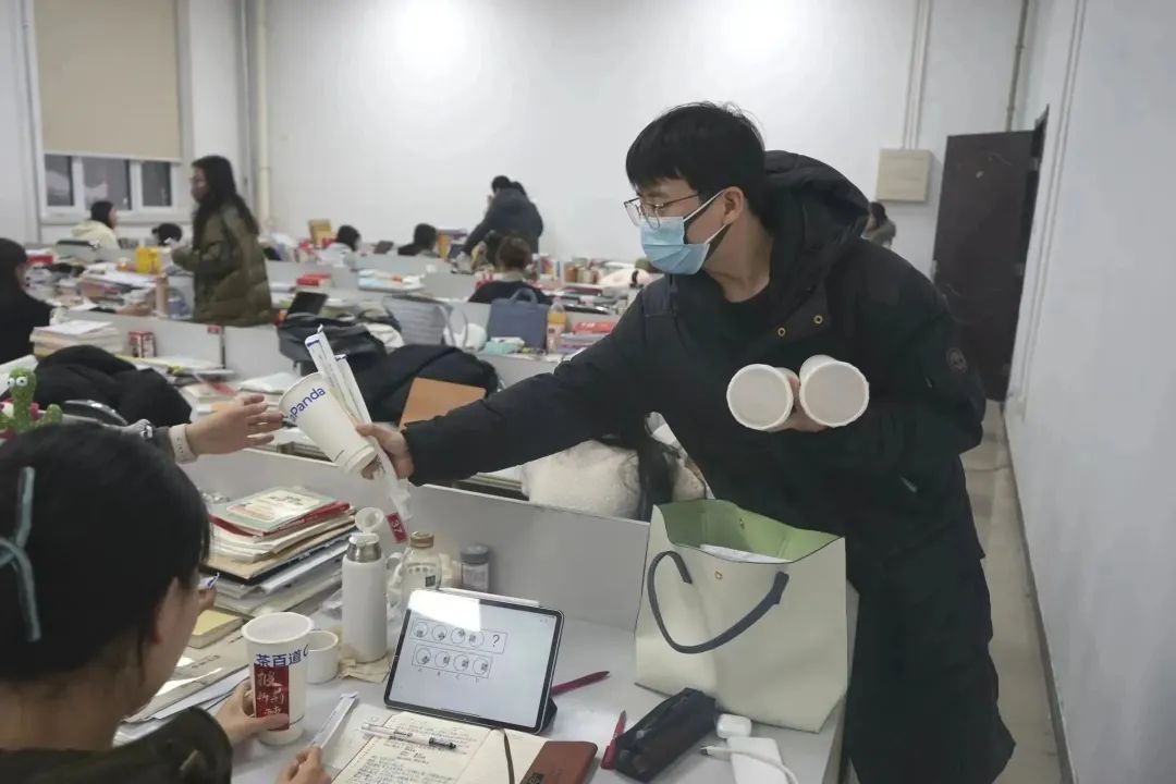“瑞雪兆丰年”“奶茶暖人心”,在固定的考研教室里手捧来自公司的一杯杯奶茶,化作了学子们前行的动力,纷纷瑞雪预示着学子们必将收获累累硕果,成功上岸。
