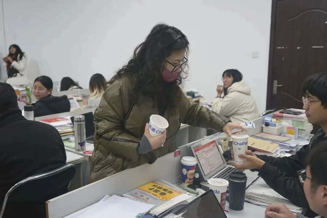 “考研学海苦相随,一杯香醇慰凡心”,仲冬始,雪纷飞,多日来考研学子在公司楼各个角落里努力背书,往来的老师不仅是看在眼里,更是记在了心里,员工们认真复习的身影始终让老师们牵挂于心。趁着初雪严寒之时,公司给员工送上一杯热腾腾的奶茶,“奶茶虽小,关怀备至”,一杯奶茶寄托着老师们最真诚的鼓励和最殷切的祝福,凝聚着对大家考研上岸的衷心祝愿,期望他们于实践中收获成长,于辛苦中尝到甘甜,最终都能成功地实现读研梦!